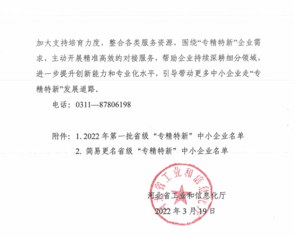 2022年3月19日,河北省工業(yè)和信息化廳公布了2022年河北省“專(zhuān)精特新”中小企業(yè)名單,河北古城香業(yè)集團(tuán)股份有限公司被認(rèn)定為“專(zhuān)精特新”企業(yè)。